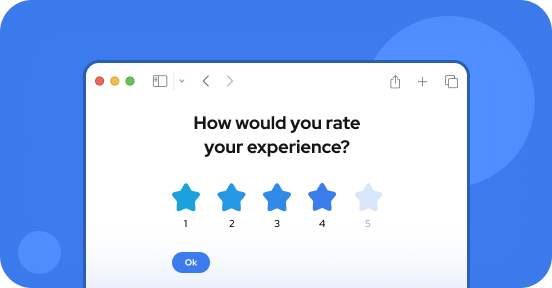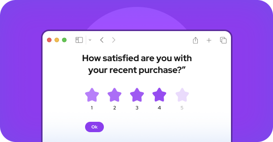 Get instant feedback right after checkout. A quick satisfaction score shows if the purchase met expectations.