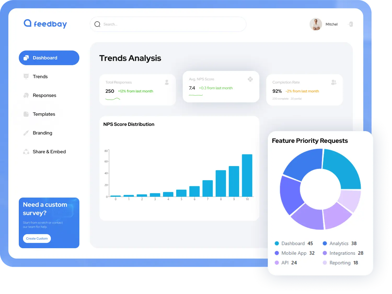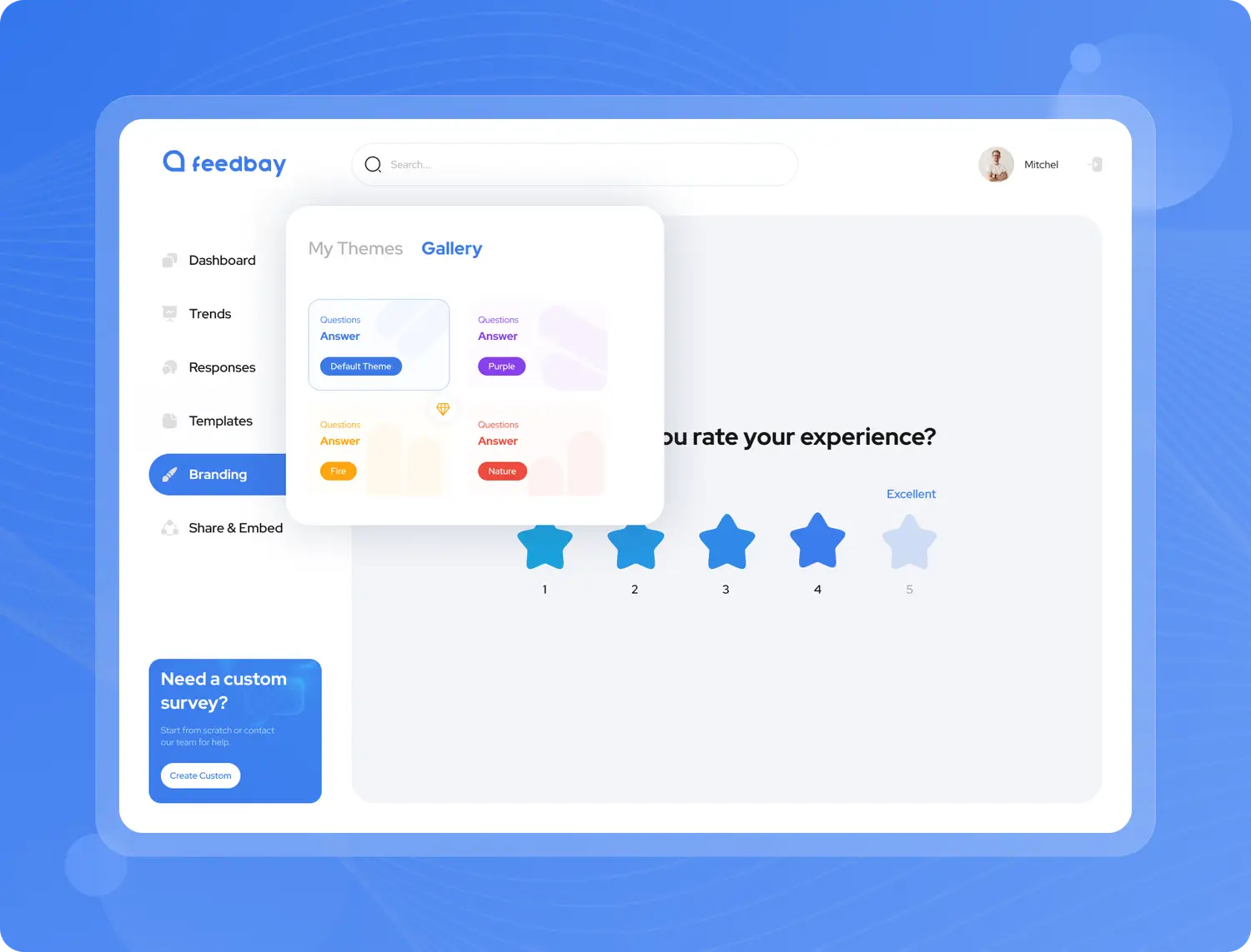 Generic surveys get ignored. People see boring forms and close them immediately. FeedBay makes your surveys look like they're part of your actual product, so customers actually complete them.