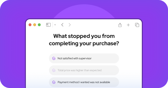 Ask visitors what helped or blocked them from taking the next step. Reveal conversion barriers hidden in your site.
